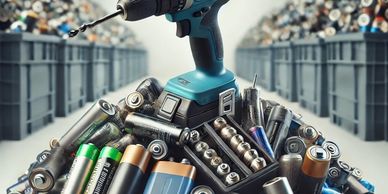 A secure container designed for the collection and initial processing of used batteries. It features fire-resistant materials, secure locking systems, sorting bins for different battery types, and initial dismantling tools for battery components.