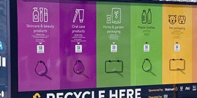 A versatile container that can handle multiple types of recyclable materials such as glass, metal, paper, and plastics. Compartmentalized sections for different materials, initial sorting and processing equipment, and educational signage to guide users on proper disposal methods.